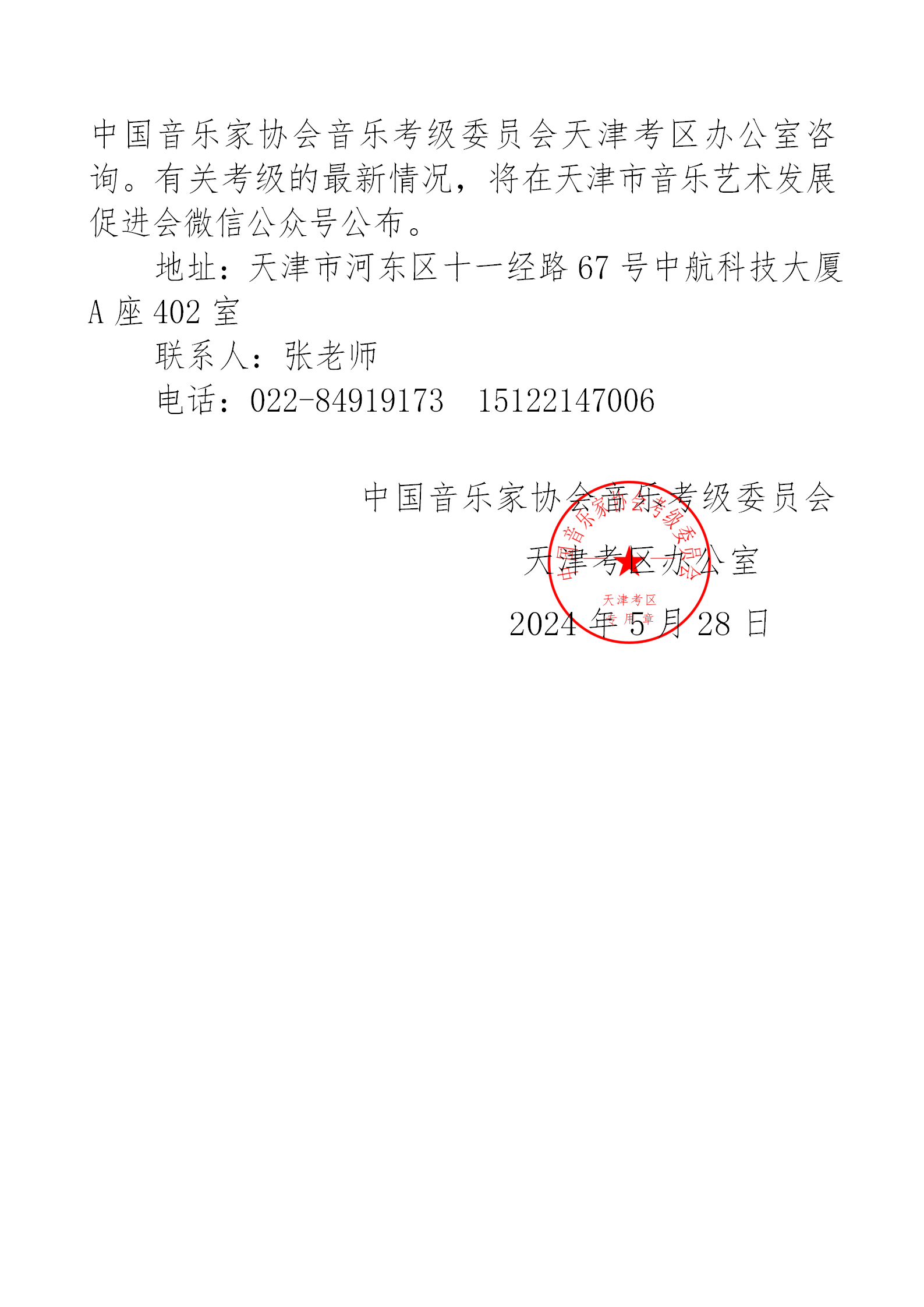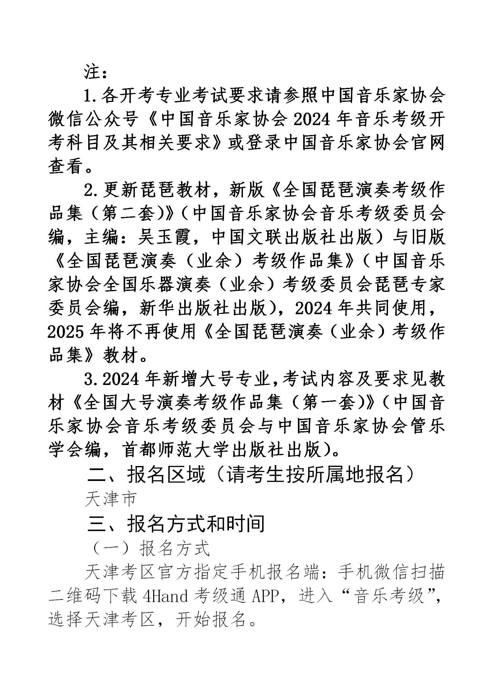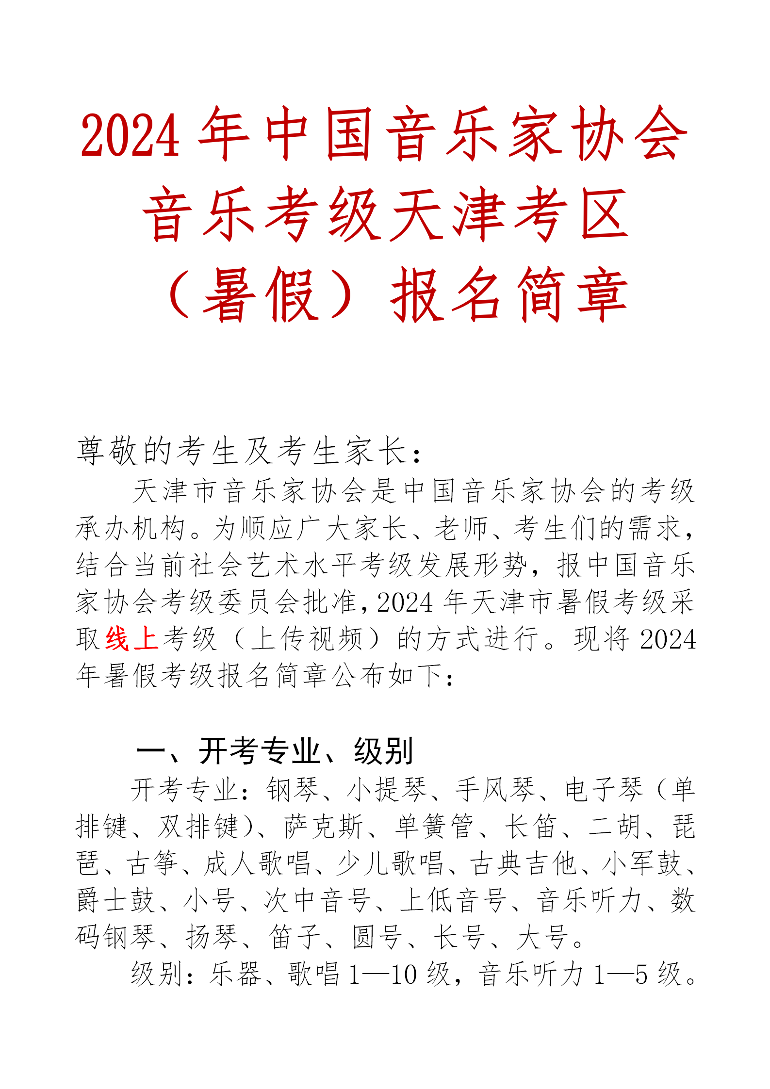 2024年中国音乐家协会音乐考级天津考区(暑假)报名简章