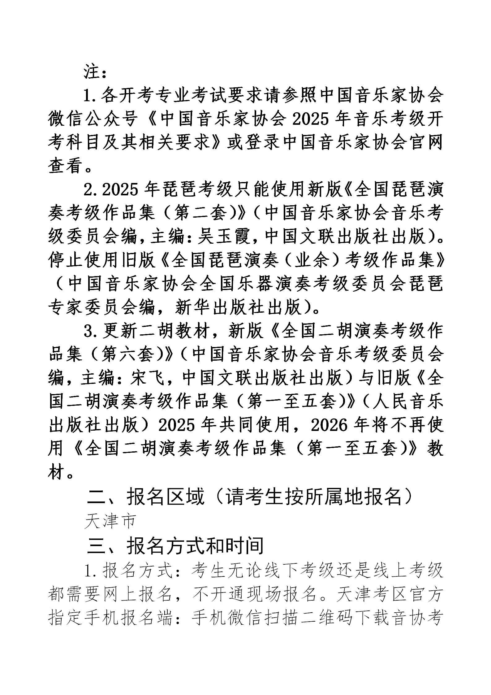 2025年中国音乐家协会音乐考级天津考区(寒假)报名简章