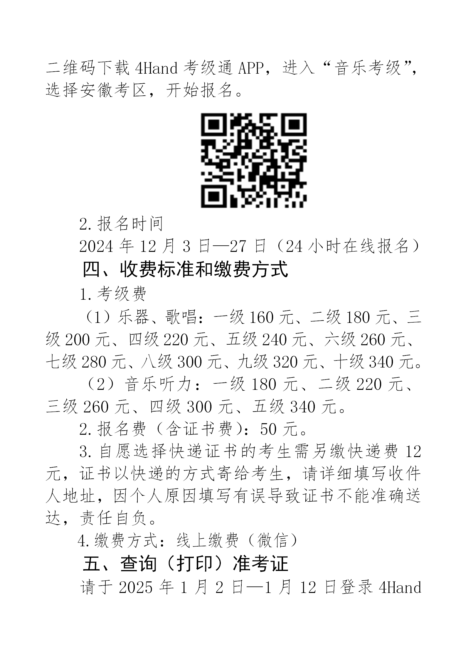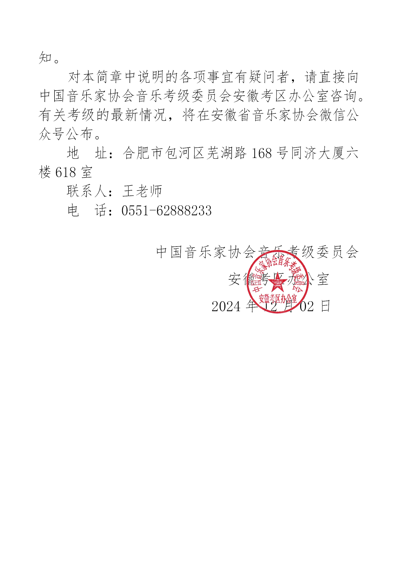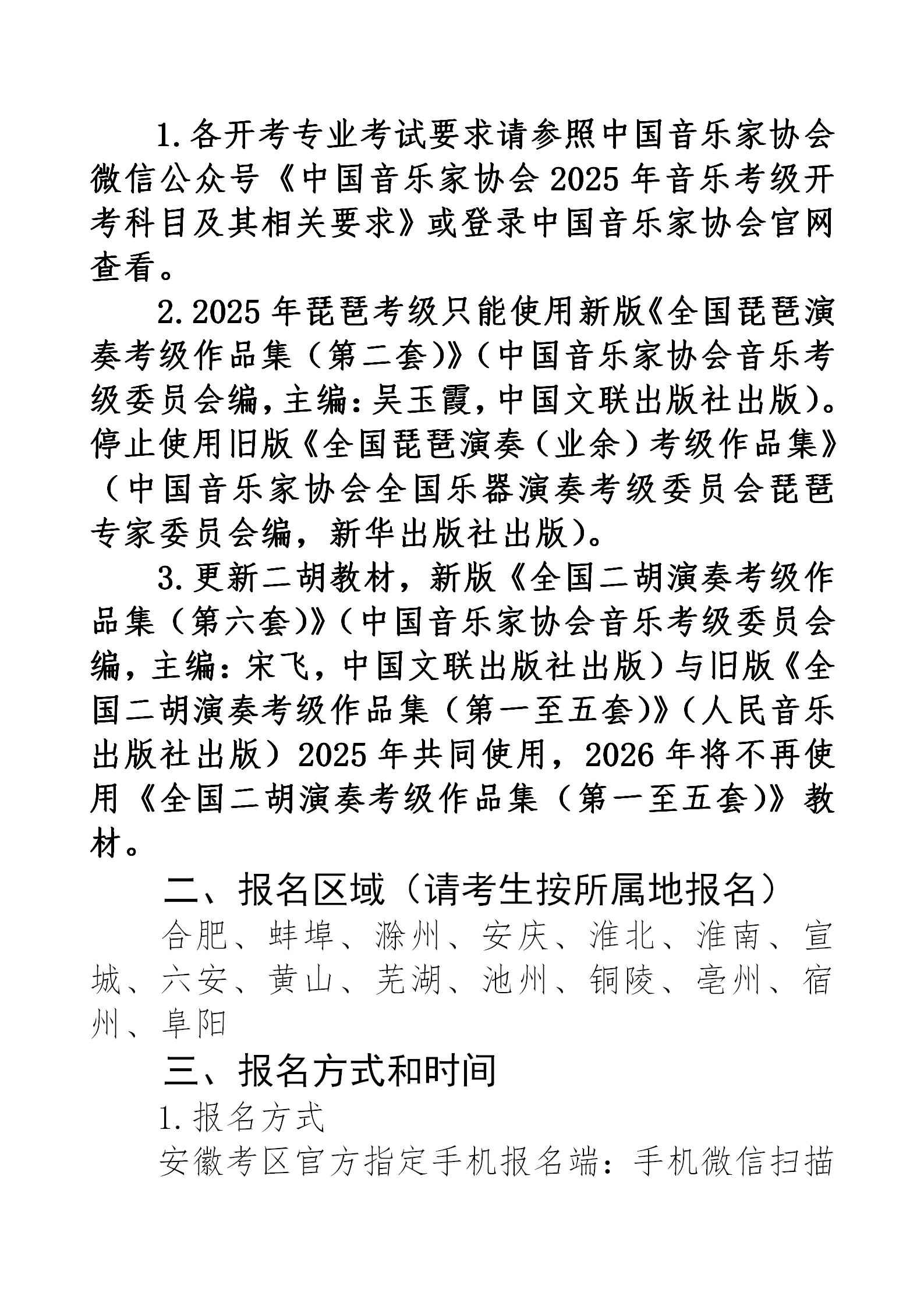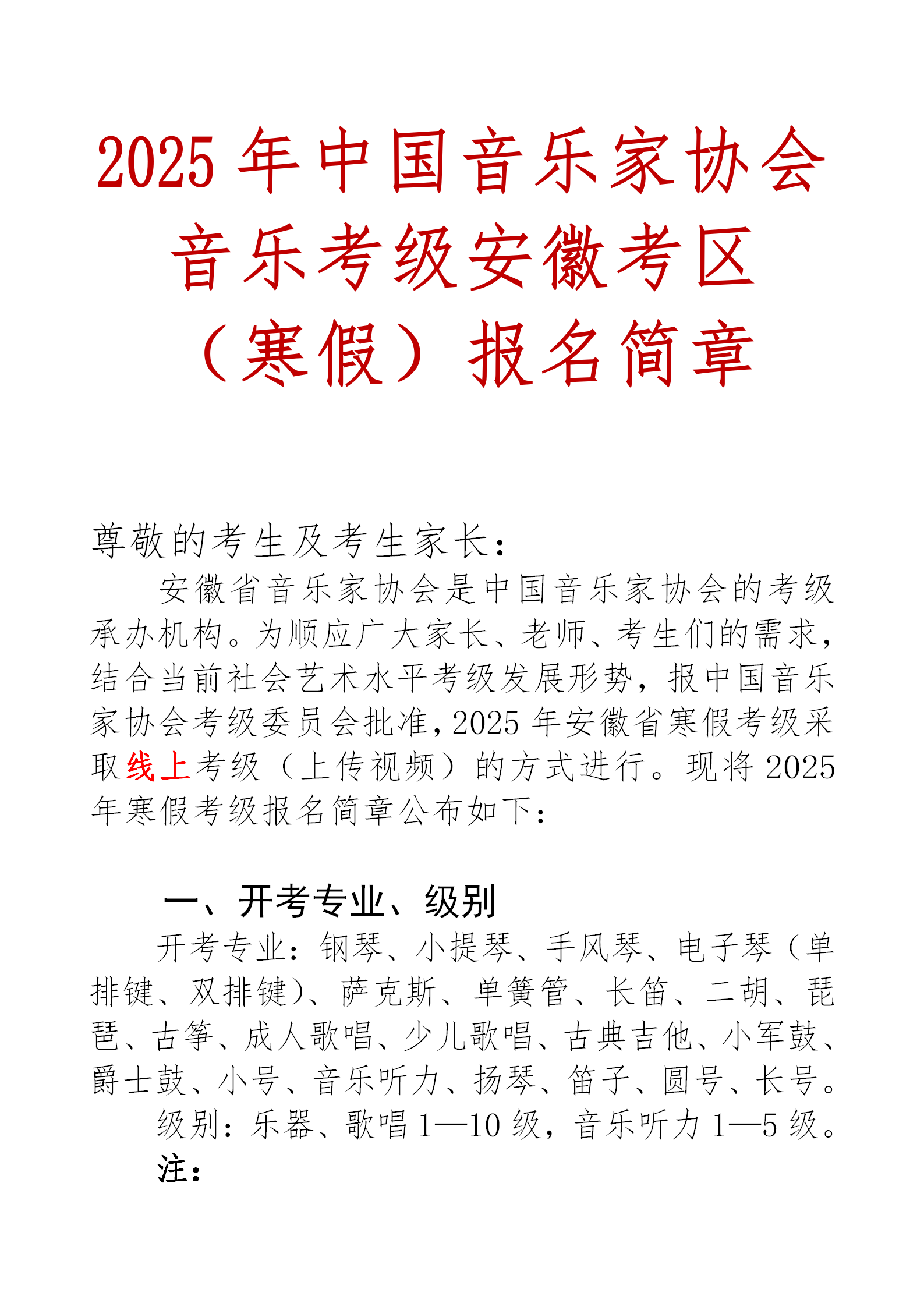 2025年中国音乐家协会音乐考级安徽考区(寒假)报名简章