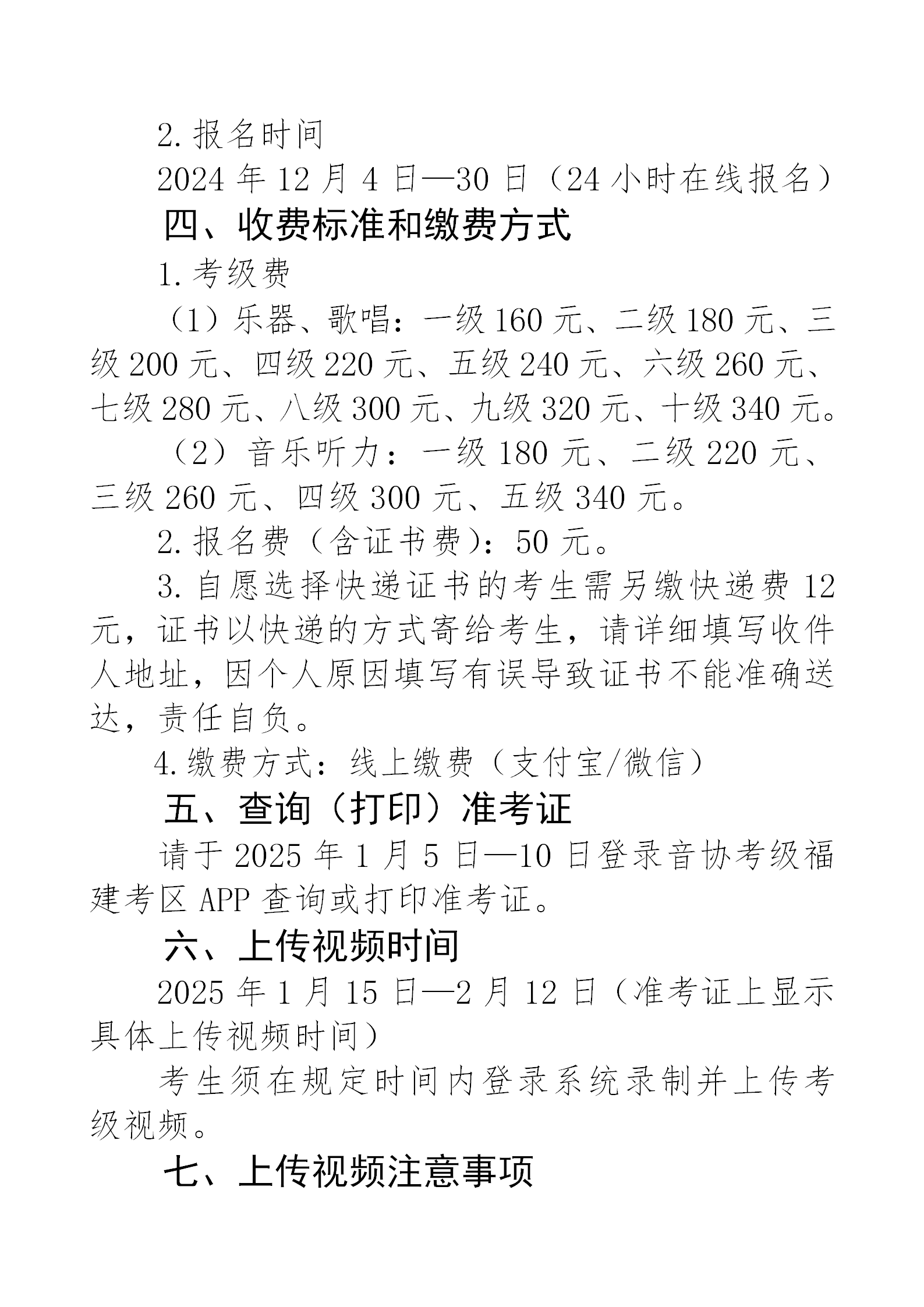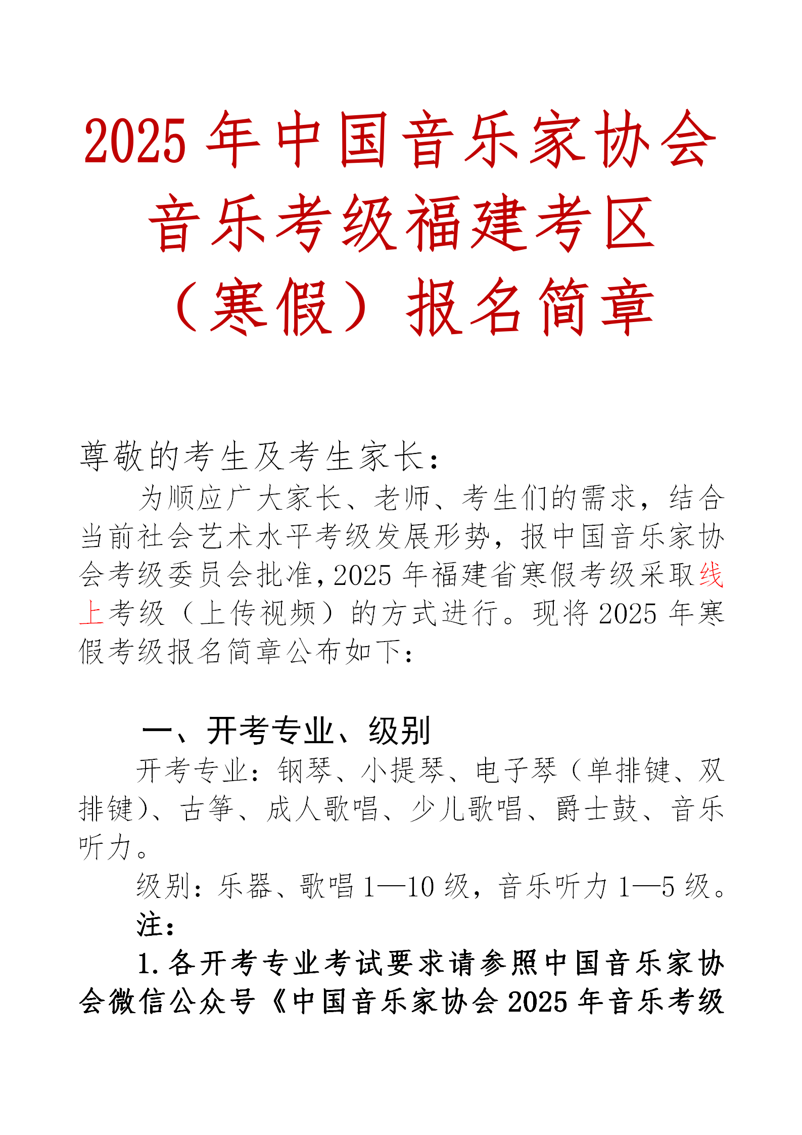 2025年中国音乐家协会音乐考级福建考区(寒假)报名简章
