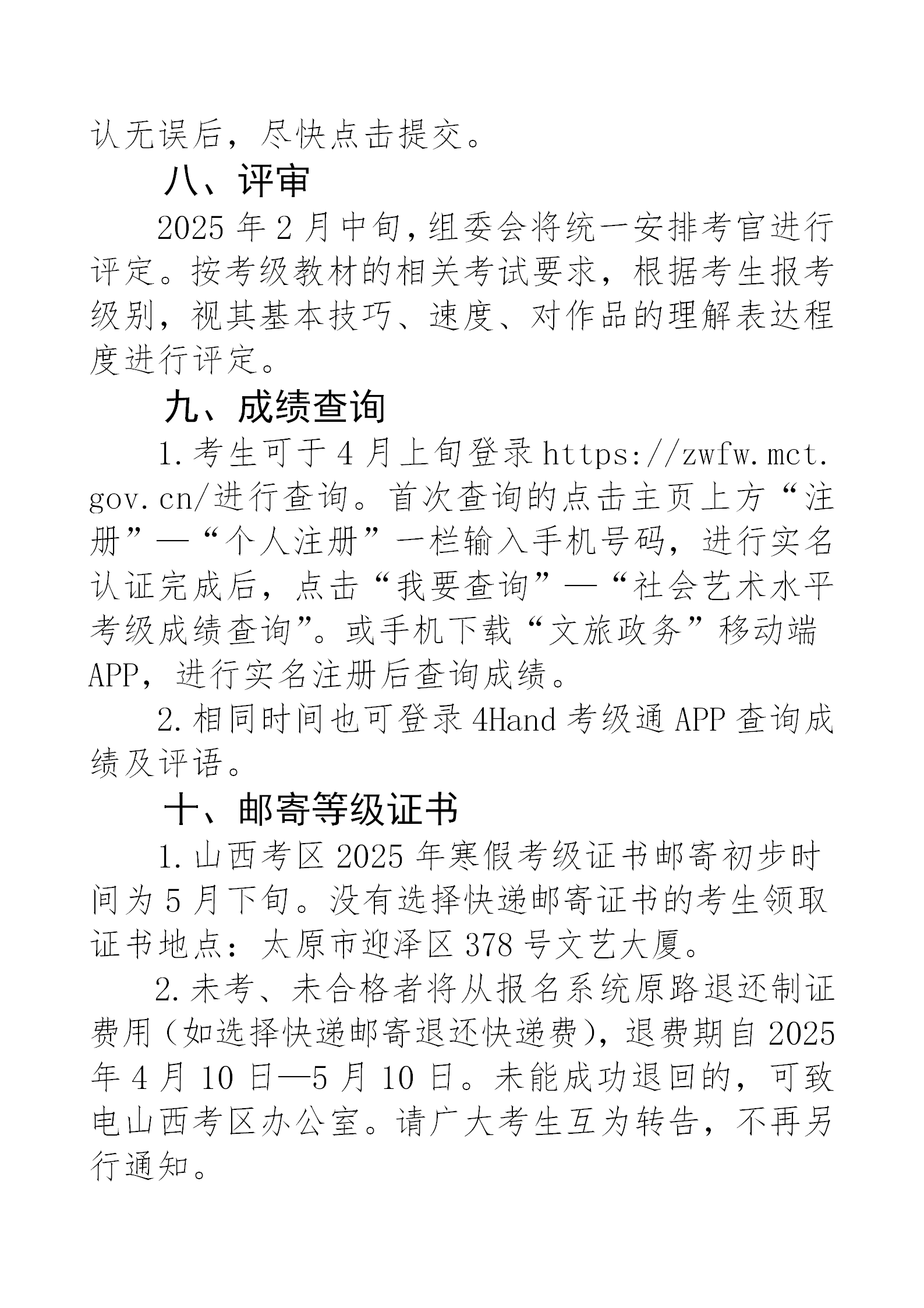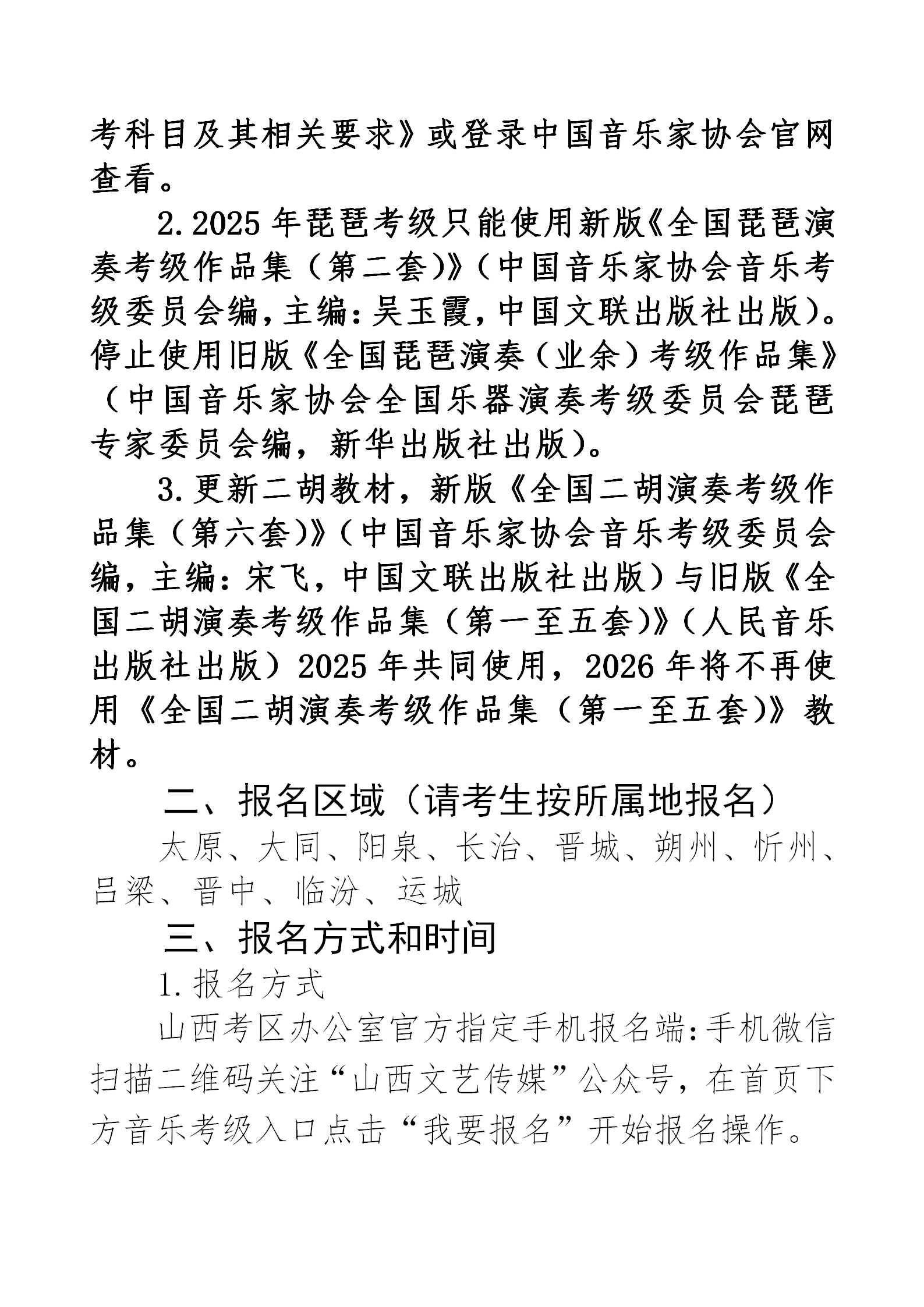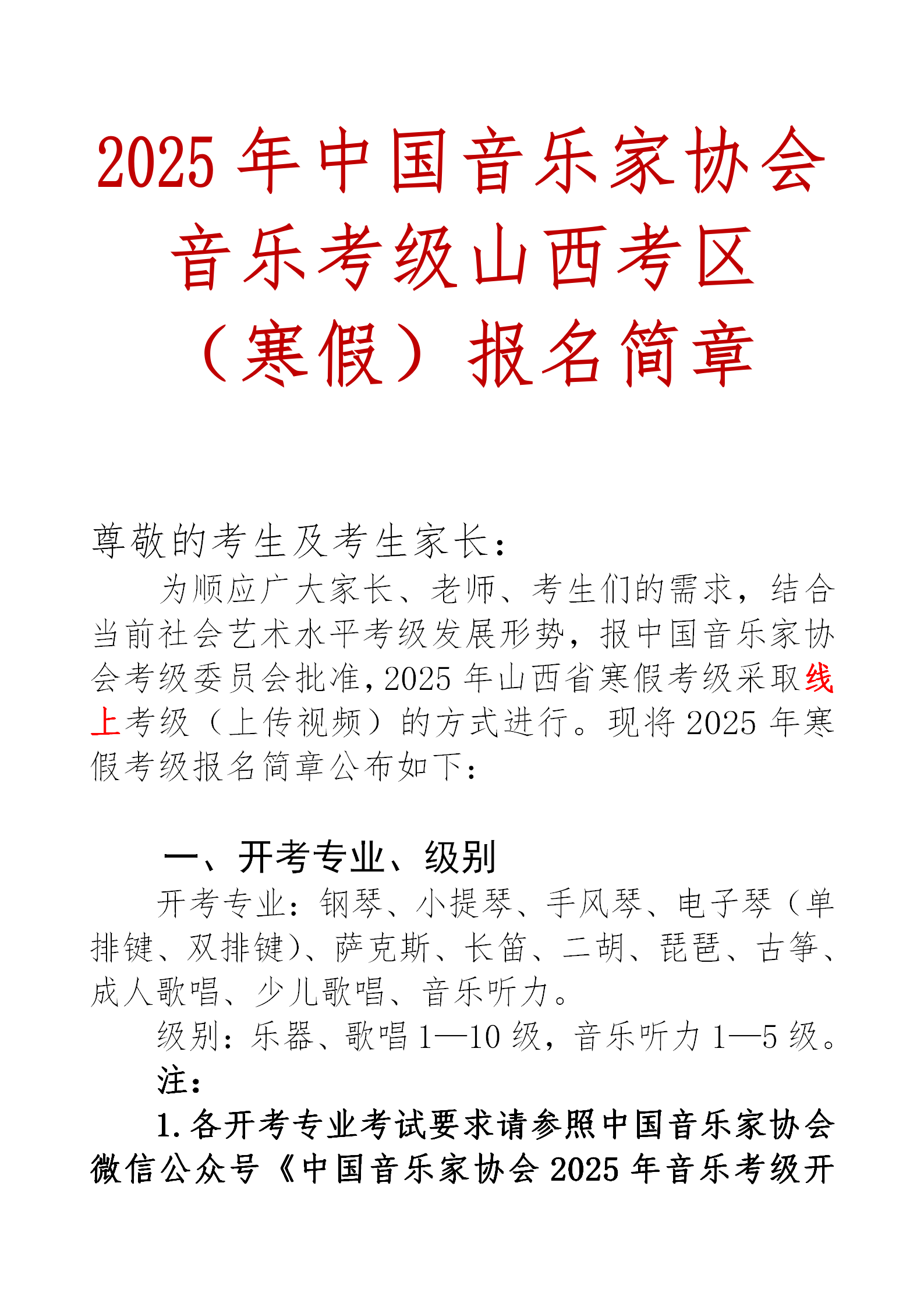 2025年中国音乐家协会音乐考级山西考区(寒假)报名简章