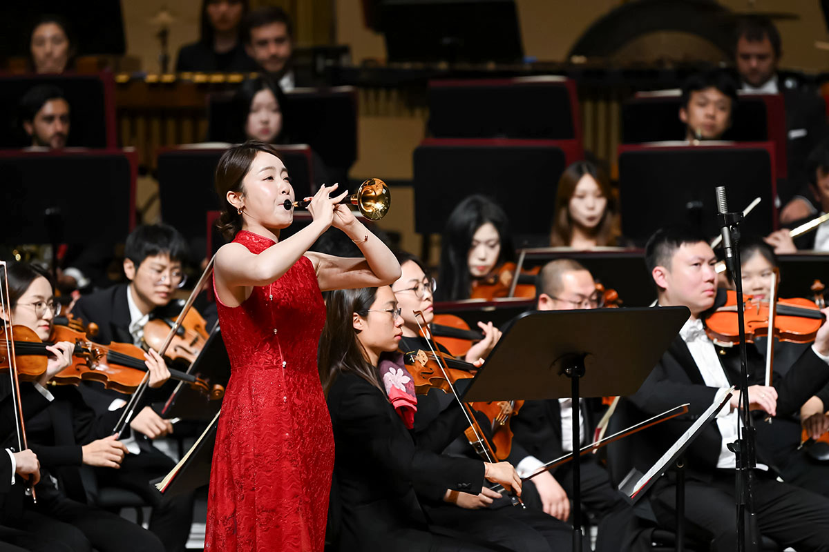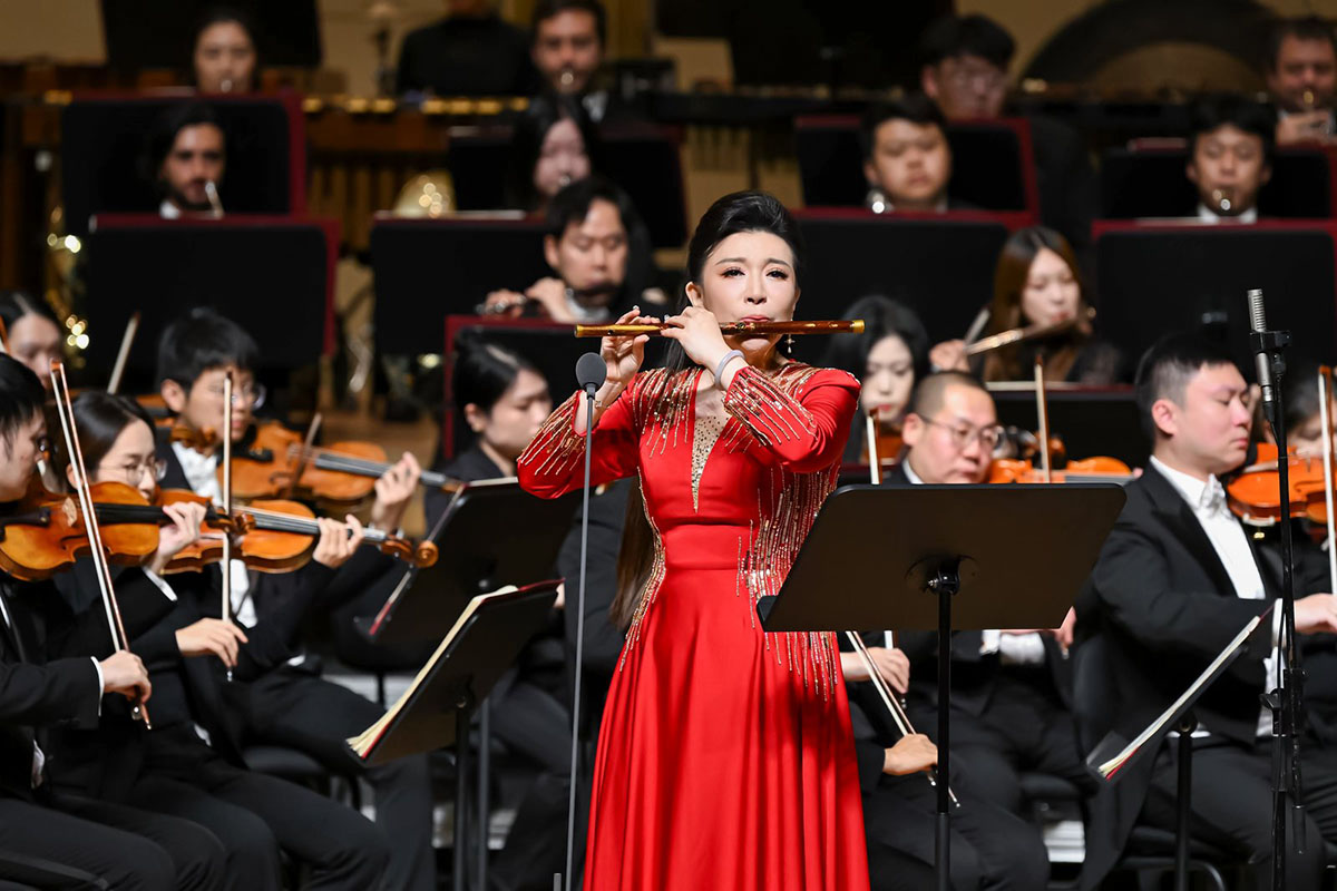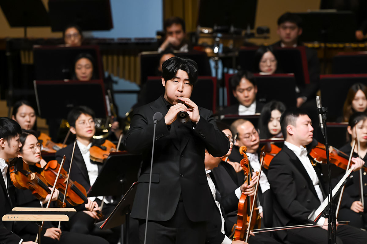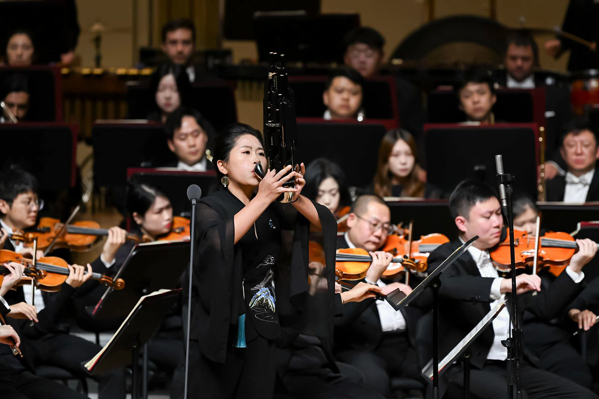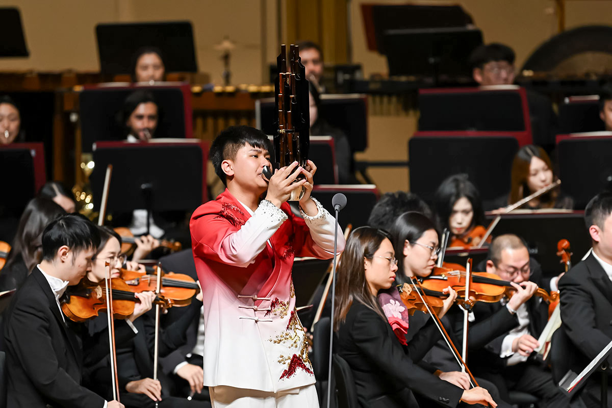 第一场音乐会的曲目编排兼具经典传承与创新表达,8 首民族管乐协奏曲涵盖竹笛、唢呐、笙、管子四大类乐器,既彰显不同管乐的独特音色魅力,又通过展现青年演奏家与交响乐团的默契配合,呈现出民族音乐与西方交响编制融合的多元风采。开场曲为竹笛协奏曲《后羿》,由青年竹笛演奏家张莹莹演奏;紧接着,青年笙演奏家郑杨带来笙协奏曲《江河万古流》(选自民族交响诗套曲《大运河》);随后,青年管子演奏家张佳理奏响管子协奏曲《余晖下的背影》;青年唢呐演奏家周艺翔带来唢呐协奏曲《遥远的呼唤》;青年竹笛演奏家范临风带来竹笛协奏曲《热情与冷漠的邂逅》;青年笙演奏家梁景然演奏笙协奏曲《川江号子》;青年唢呐演奏家刘雯雯带来唢呐协奏曲《大开门》(节选);最后,青年竹笛演奏家李乐以竹笛协奏曲《陌上花开》(节选)收尾。整场音乐会既有传统音乐的中正平和,又有青年一代的鲜活朝气与交响编制的恢弘气势,赢得现场观众经久不息的掌声。