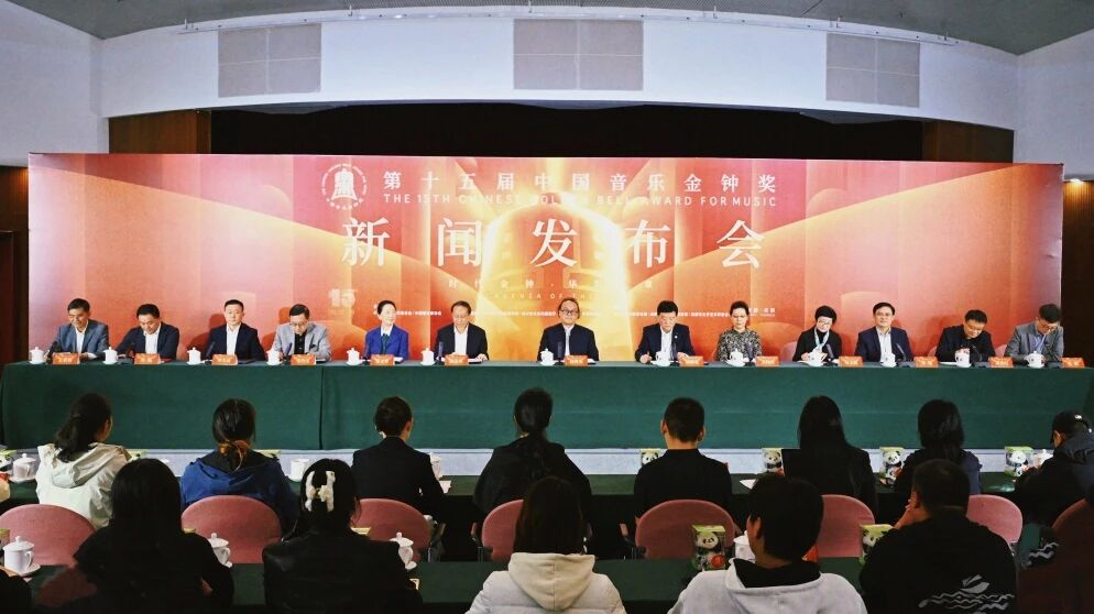 10月14日上午,第十五届中国音乐金钟奖新闻发布会在北京举行。本届金钟奖由中国文学艺术界联合会、中国音乐家协会主办,成都市人民政府、中共四川省委宣传部、四川省文化和旅游厅、四川省文学艺术界联合会共同承办。中国文联党组成员、副主席、书记处书记高世名,中国音协分党组书记、驻会副主席兼秘书长韩新安,中国文联国内联络部副主任李翔,成都市人民政府副市长陈志勇,成都市文广旅局副局长李天昊,音乐家代表关牧村、邹文琴、吴玉霞、韦丹文等出席发布会,共同揭晓本届金钟奖的整体规划、赛事安排及筹备情况。发布会由中国音协分党组成员、副秘书长王亚春主持。