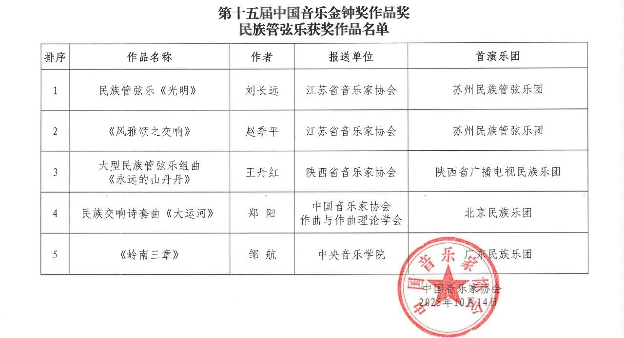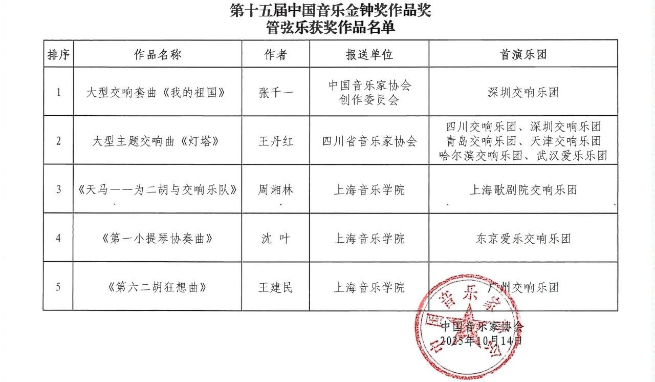 附:第十五届中国音乐金钟奖作品奖获奖名单