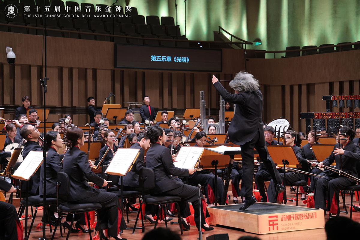 10月21日晚,繁花竞放——第十五届中国音乐金钟奖获奖作品(民族管弦乐)音乐会,在成都交响乐团音乐厅隆重上演。本场音乐会以顶尖阵容演绎五部金钟奖获奖佳作,指挥家彭家鹏执棒,带领苏州民族管弦乐团与成都市音乐家协会合唱团,为现场观众带来一场兼具艺术性与文化底蕴的听觉盛宴,也为成都的秋夜注入浓郁的音乐氛围。