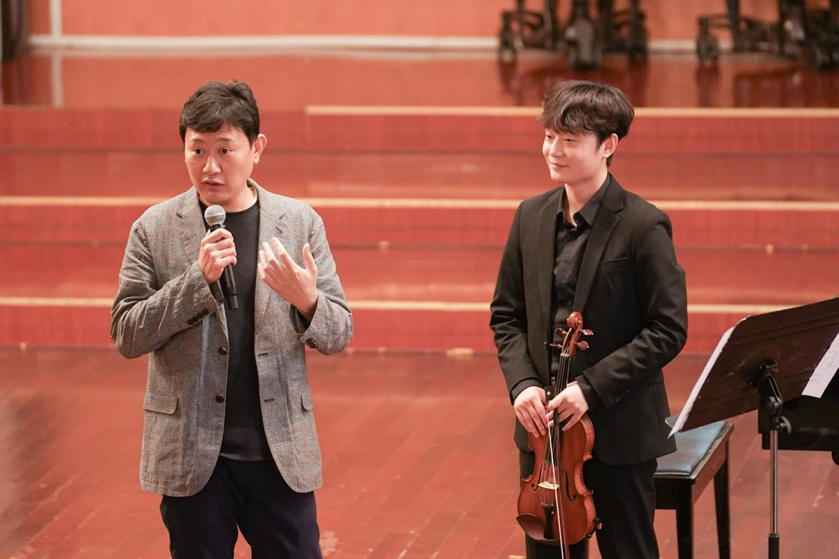 各位专家围绕小提琴、中提琴、大提琴等弦乐专业,通过理论解读、曲目讲解、示范演奏、现场答疑等方式为学员带来丰富实用的教学内容。徐惟聆从音乐的艺术表达、国际视野等各个角度,解答了学员在学习、教学实践过程中的疑难问题;何荣针对学员的示范曲目进行细致入微的针对性指导,深入剖析乐曲的技术精髓,逐一拆解演奏逻辑,细抠技术细节;李继武为学员厘清“教”与“学”、技术与音乐表现、内心听觉与客观听觉、音乐表达与演奏实践的内在关联,分享审美观提升的路径;陈曦总结了林耀基先生的艺术精神与教学方法,并结合自身丰富的学习、演出经历,带来富有启发的教学分享;何弦解答了学员在小提琴演奏技巧、教学方法与个人专业生涯规划等方面的问题,传递了兼具实用性与深度的专业理念;马雯聚焦大提琴的演奏技巧,精讲与示范相结合,手把手指导学员打磨演奏细节、优化技艺表达、把握乐曲风格。