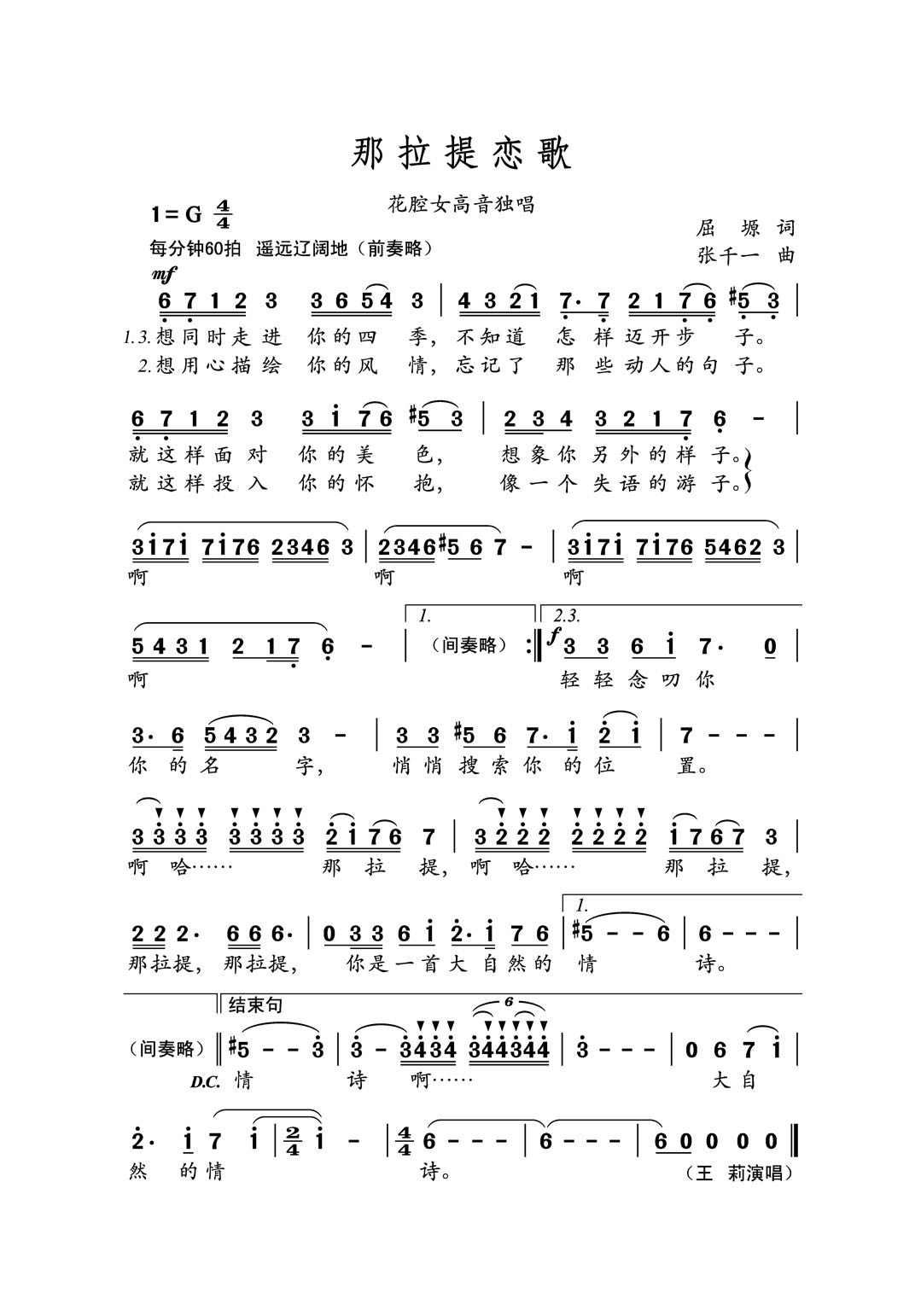 演唱者:王 莉