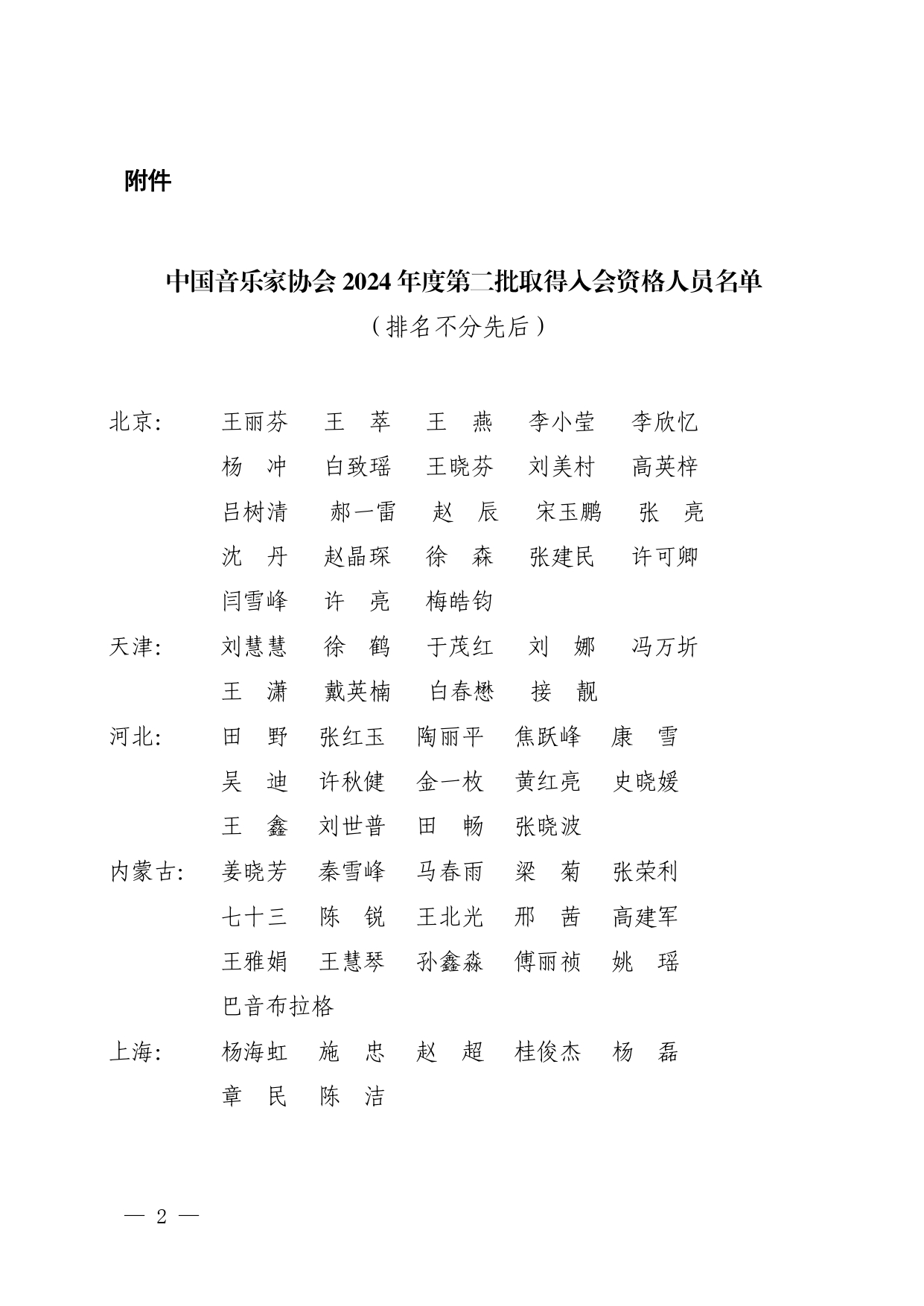 中国音乐家协会2024年度第二批取得入会资格人员公示