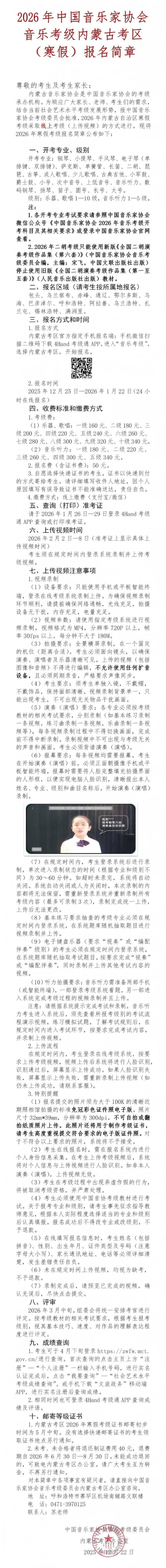 2026年中国音乐家协会音乐考级内蒙古考区(寒假)报名简章