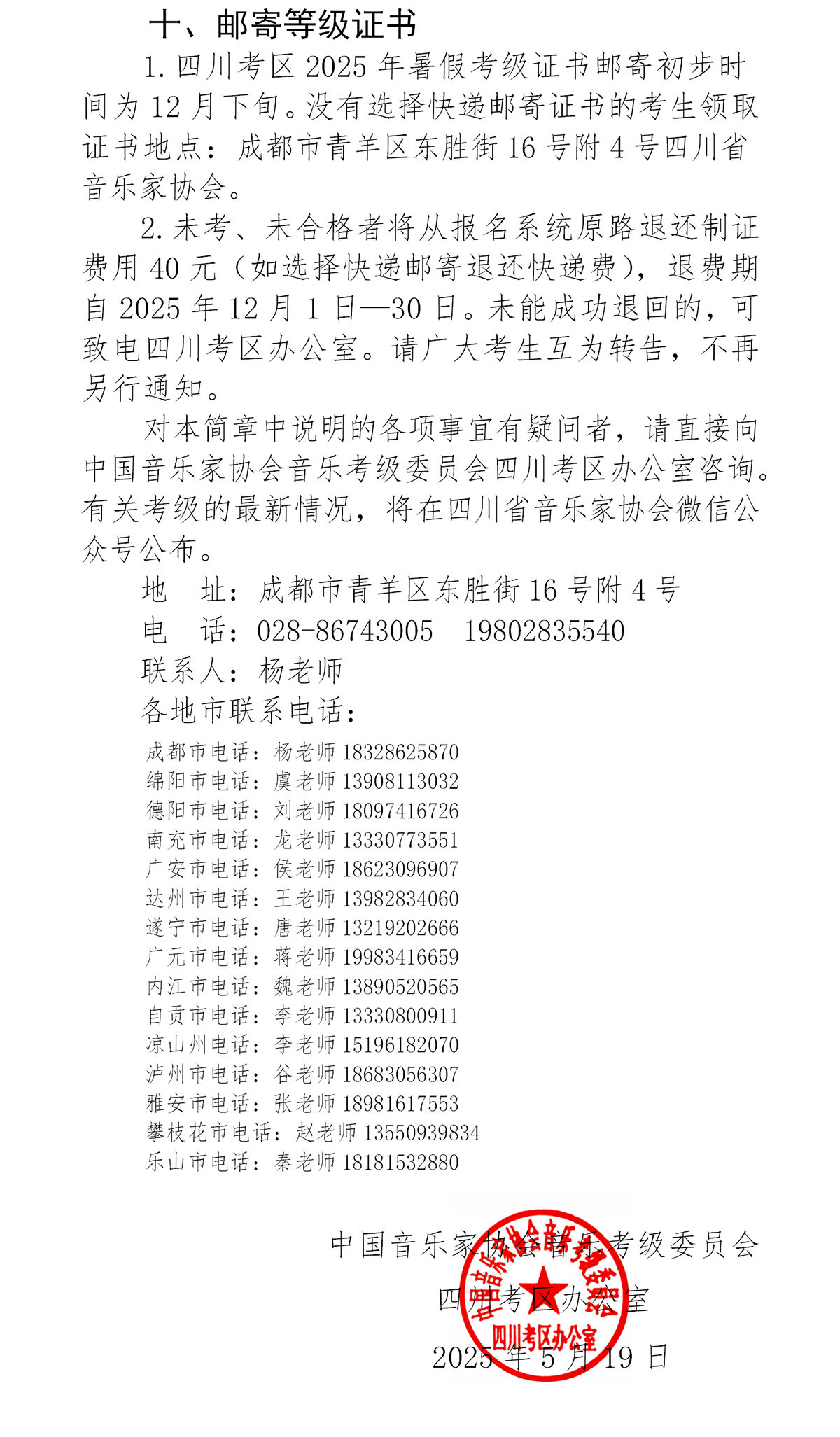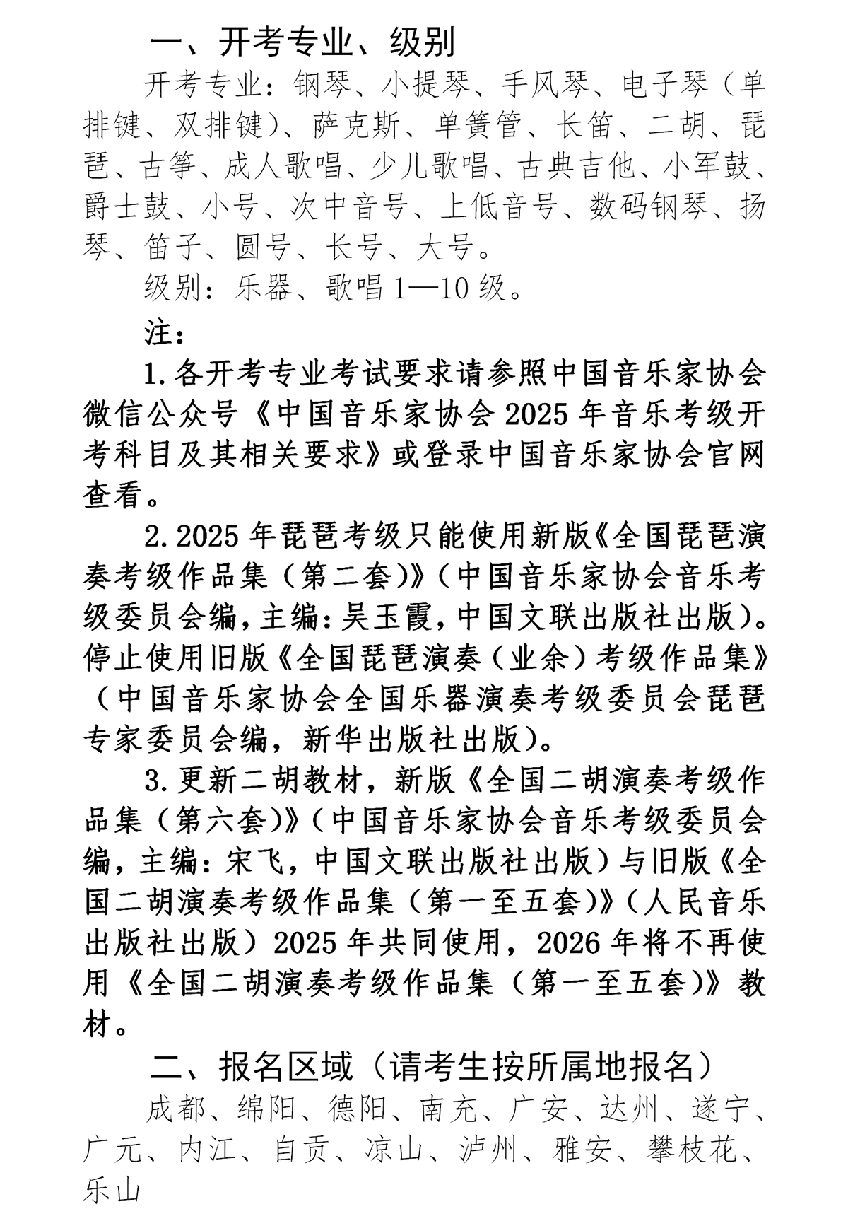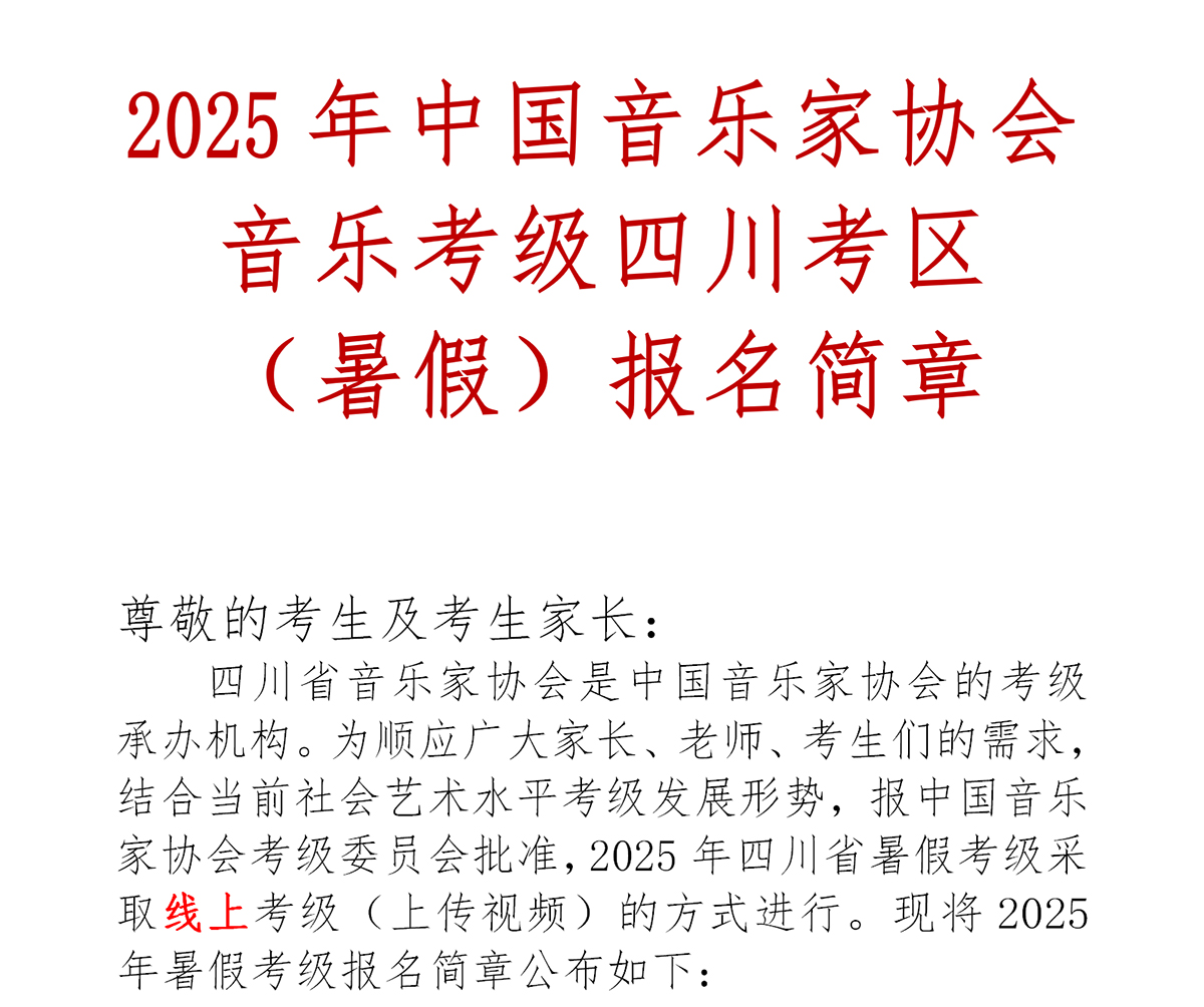 2025年中国音乐家协会音乐考级四川考区(暑假)报名简章
