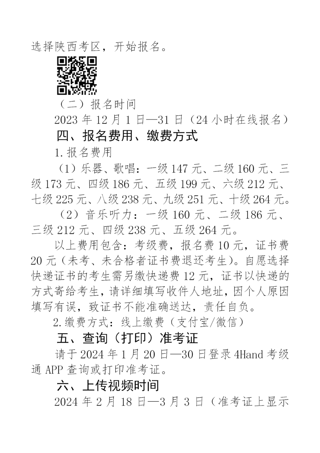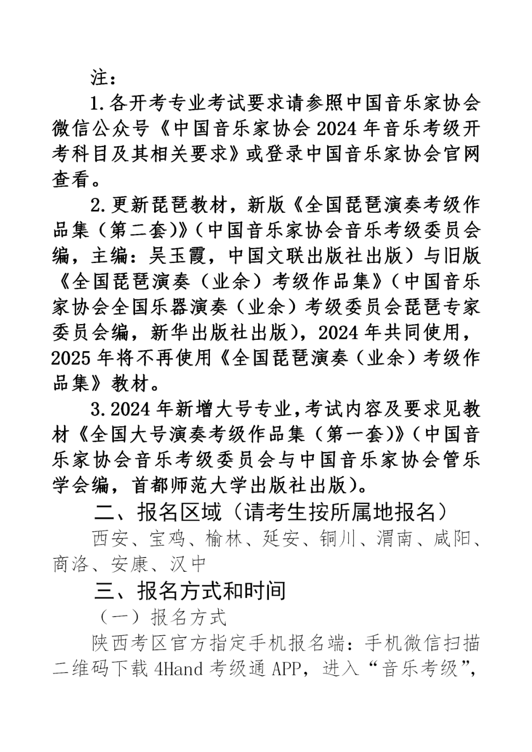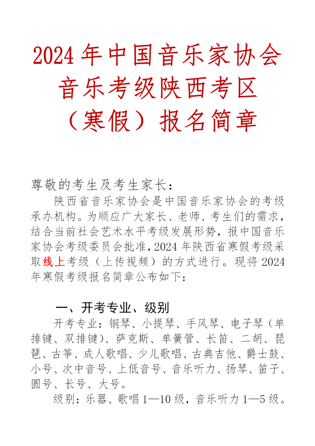 2024年中国音乐家协会音乐考级陕西考区(寒假)报名简章