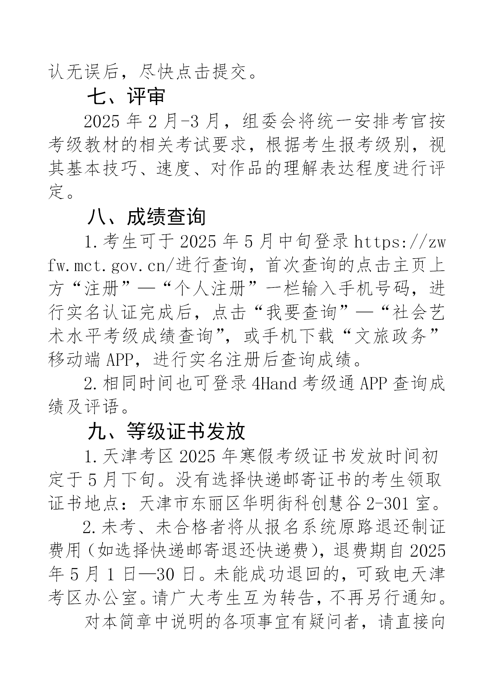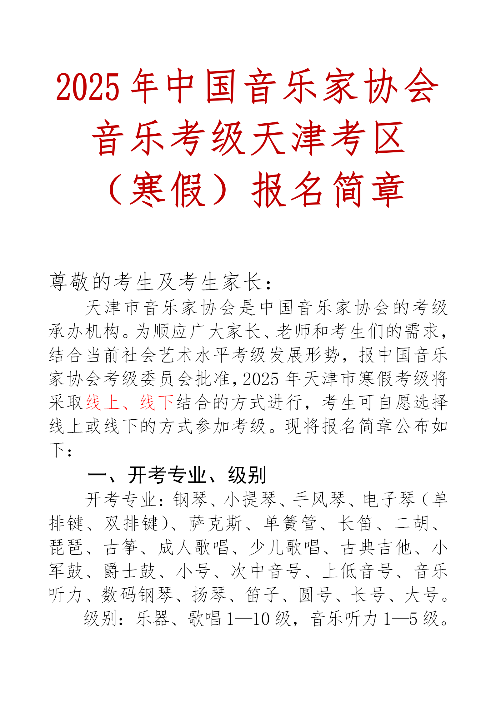 2025年中国音乐家协会音乐考级天津考区(寒假)报名简章