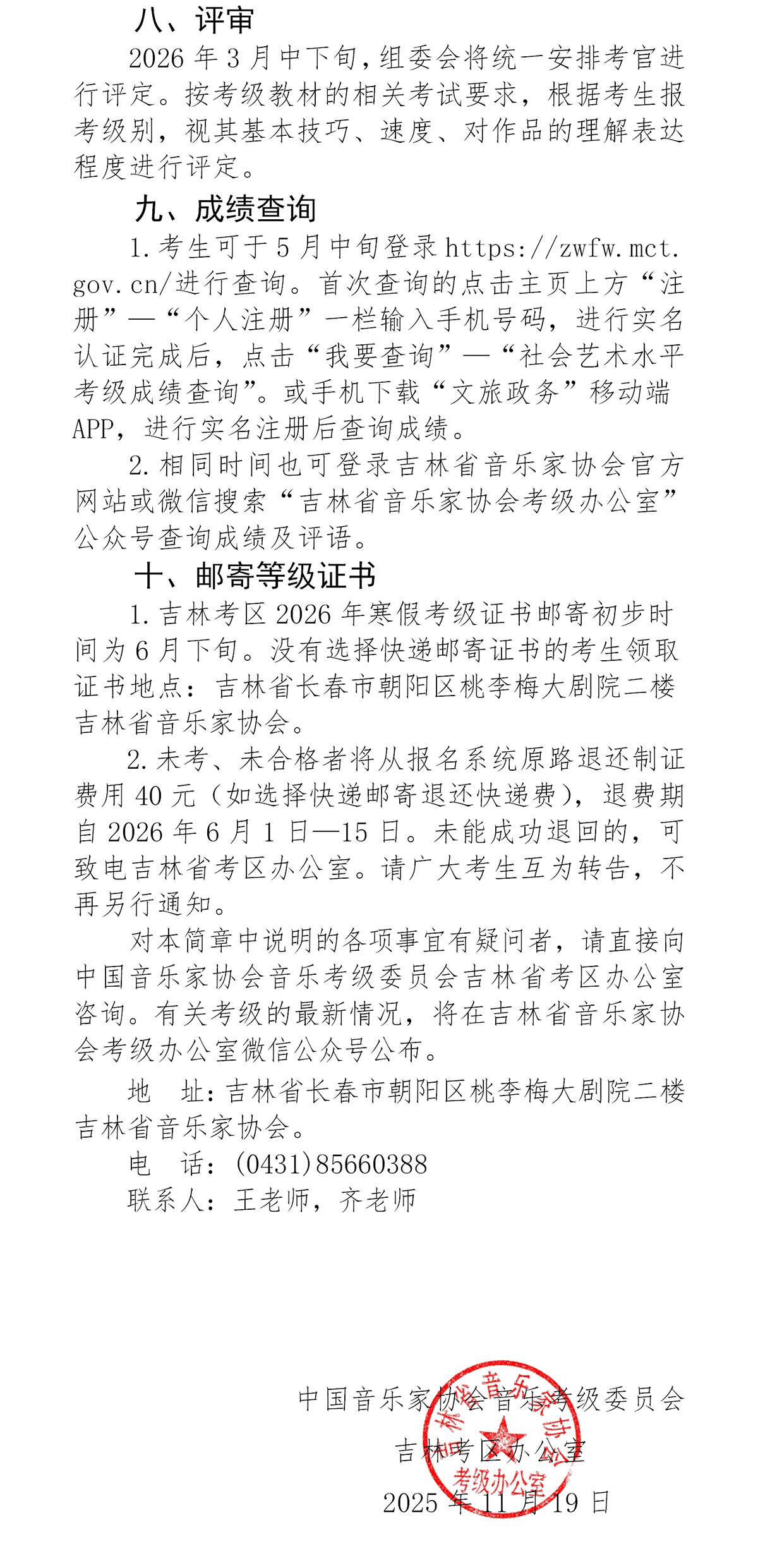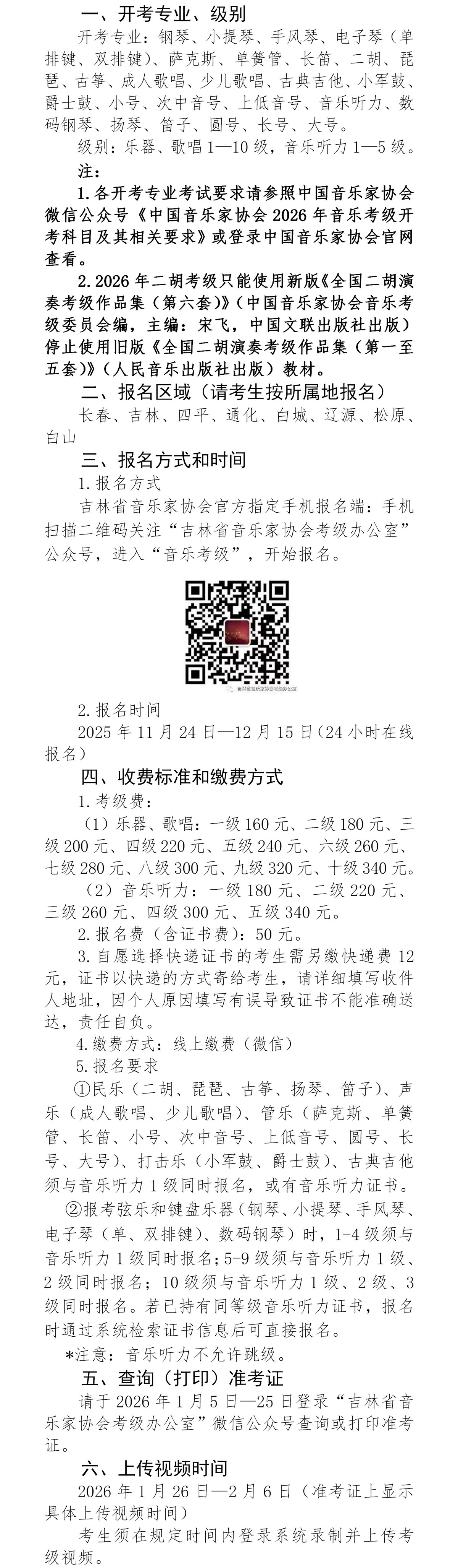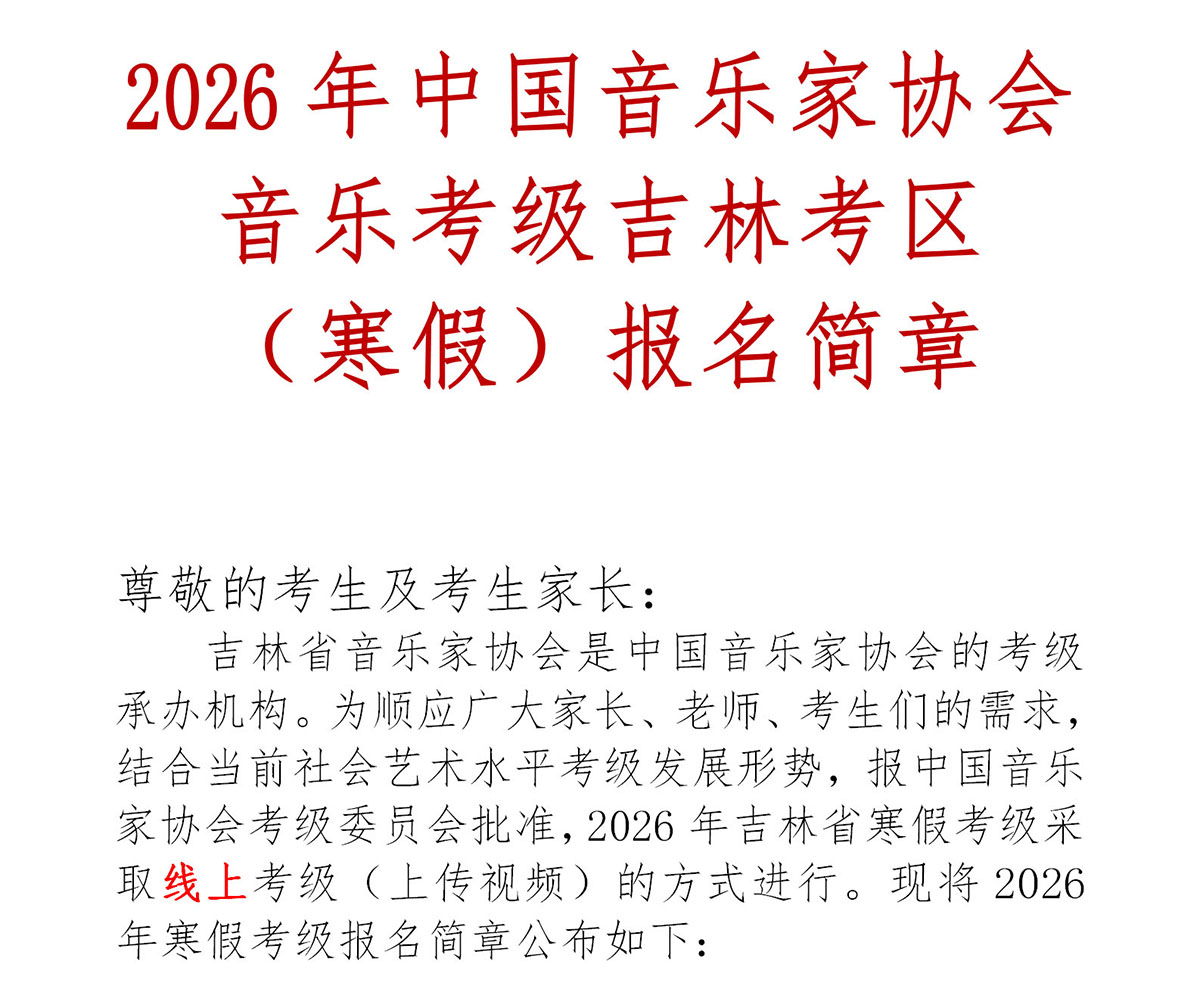 2026年中国音乐家协会音乐考级吉林考区(寒假)报名简章