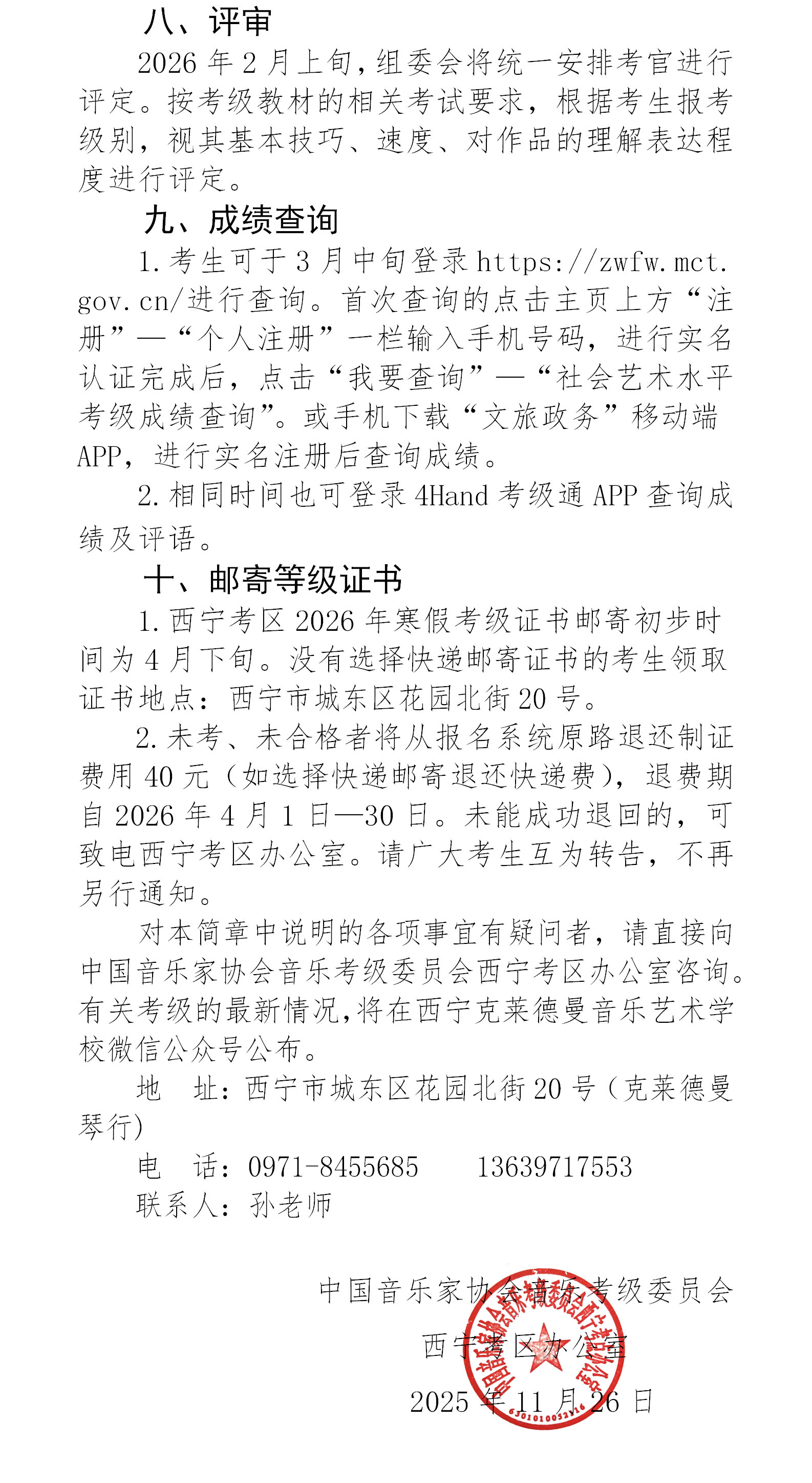 2026年中国音乐家协会音乐考级西宁考区(寒假)报名简章