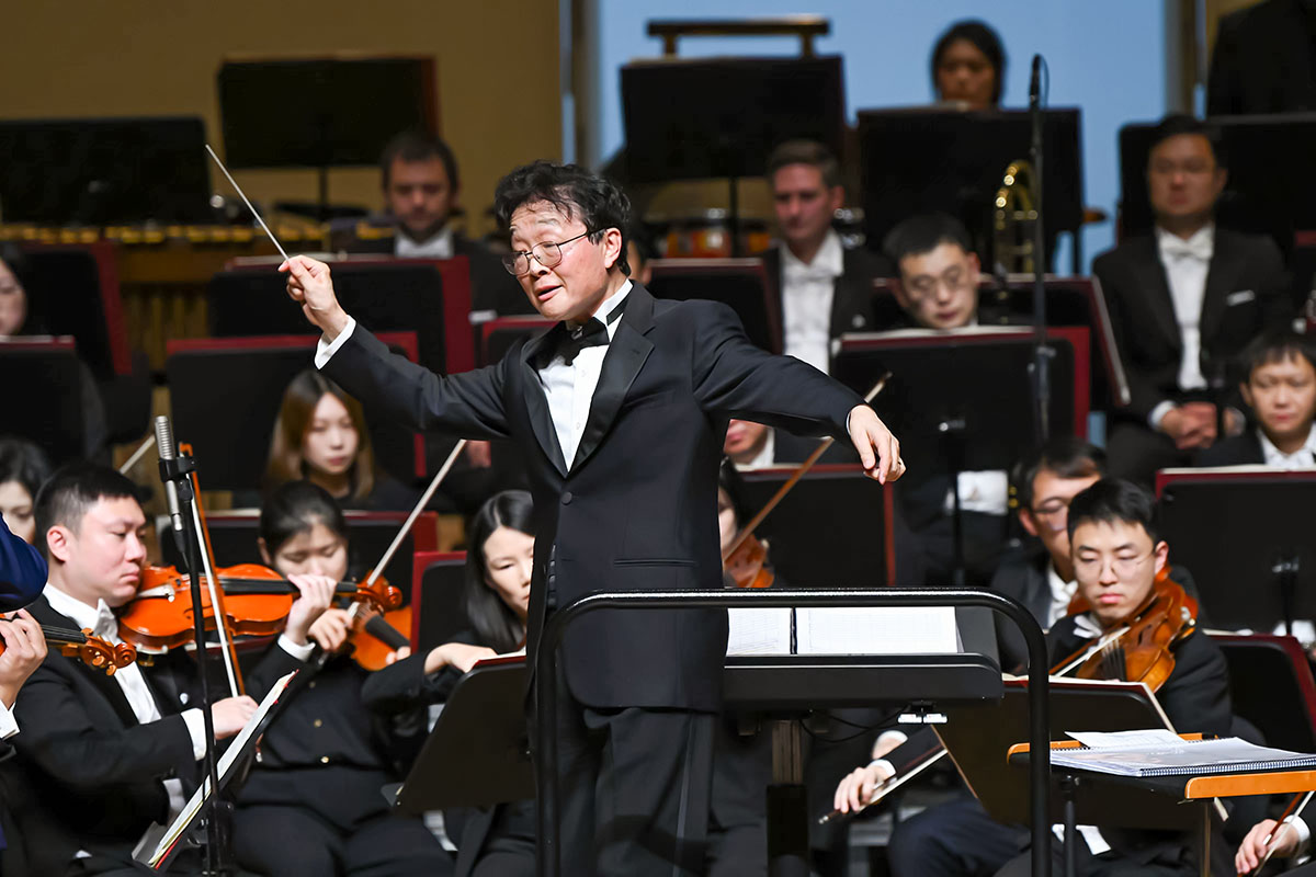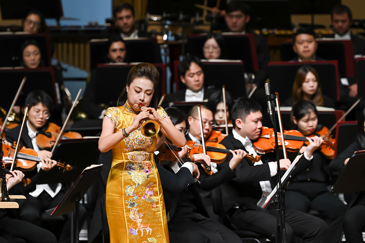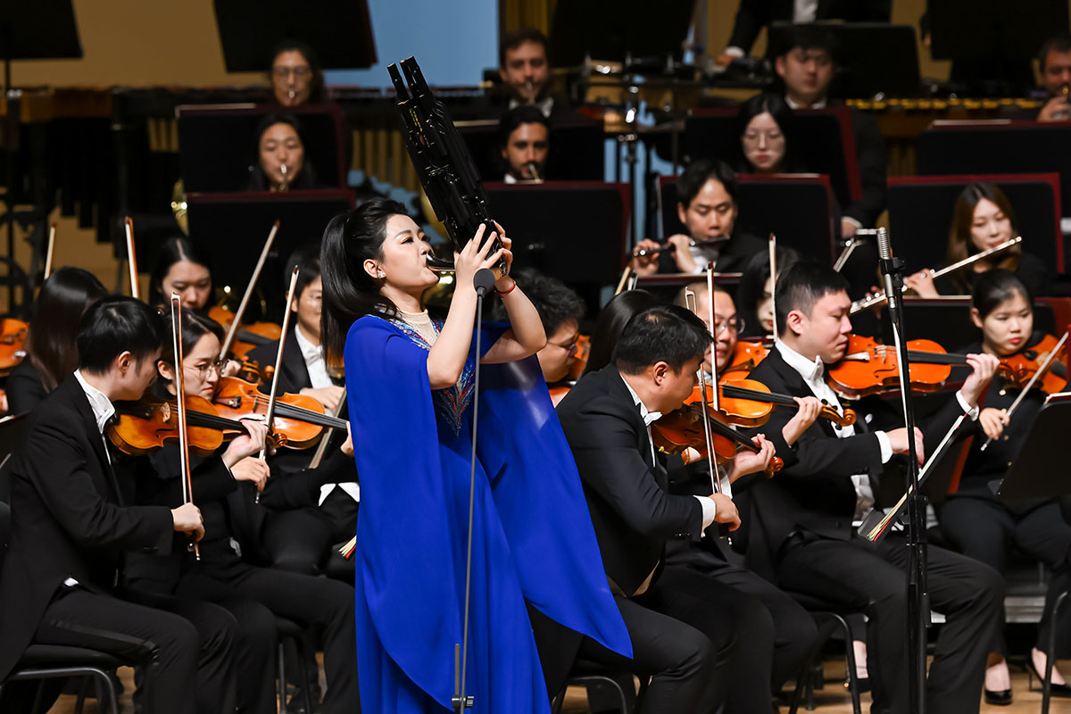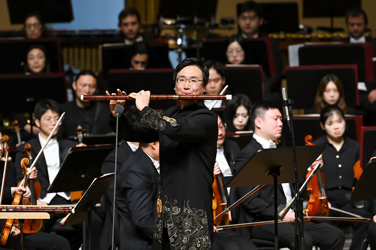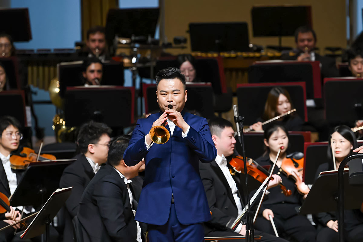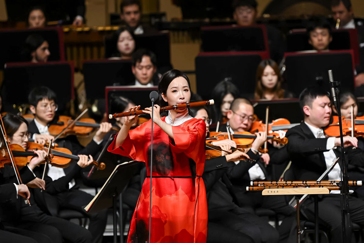 第一场音乐会的曲目编排兼具经典传承与创新表达,8 首民族管乐协奏曲涵盖竹笛、唢呐、笙、管子四大类乐器,既彰显不同管乐的独特音色魅力,又通过展现青年演奏家与交响乐团的默契配合,呈现出民族音乐与西方交响编制融合的多元风采。开场曲为竹笛协奏曲《后羿》,由青年竹笛演奏家张莹莹演奏;紧接着,青年笙演奏家郑杨带来笙协奏曲《江河万古流》(选自民族交响诗套曲《大运河》);随后,青年管子演奏家张佳理奏响管子协奏曲《余晖下的背影》;青年唢呐演奏家周艺翔带来唢呐协奏曲《遥远的呼唤》;青年竹笛演奏家范临风带来竹笛协奏曲《热情与冷漠的邂逅》;青年笙演奏家梁景然演奏笙协奏曲《川江号子》;青年唢呐演奏家刘雯雯带来唢呐协奏曲《大开门》(节选);最后,青年竹笛演奏家李乐以竹笛协奏曲《陌上花开》(节选)收尾。整场音乐会既有传统音乐的中正平和,又有青年一代的鲜活朝气与交响编制的恢弘气势,赢得现场观众经久不息的掌声。