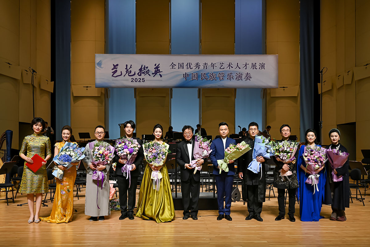 为深入贯彻落实党的二十大和二十届四中全会精神,认真学习践行习近平文化思想,努力造就一批有影响的各领域文艺领军人物、建设一支宏大的文艺人才队伍,集中展示新时代中国民族管乐发展水平和人才培养成果,由中宣部文艺局、中国文联国内联络部、中国音乐家协会共同主办的“艺苑撷英”——2025全国优秀青年中国民族管乐演奏人才展演音乐会,11月26日、27日晚在中央音乐学院歌剧音乐厅精彩呈现。张莹莹、郑杨、张佳理、周艺翔、范临风、梁景然、刘雯雯、李乐、王一、张辉、魏思骏、王展展、冯天石、于旭明、王俊侃、张倩渊16位从全国选拔出的优秀青年民族管乐演奏人才,携手指挥家许知俊、叶聪,以及中央音乐学院交响乐团,为观众呈现了梁两场兼具传统底蕴与时代活力的民族管乐盛宴,持续展现中国民族音乐的传承力量与时代活力,奏响了中国民族音乐传承与创新的时代强音。