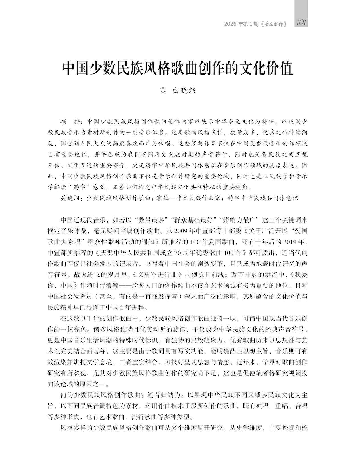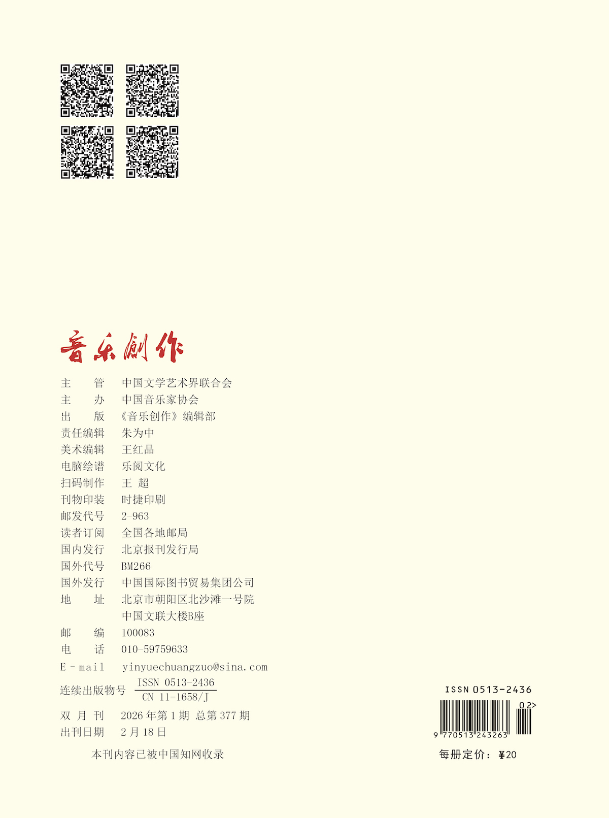 《音乐创作》2026年第1期