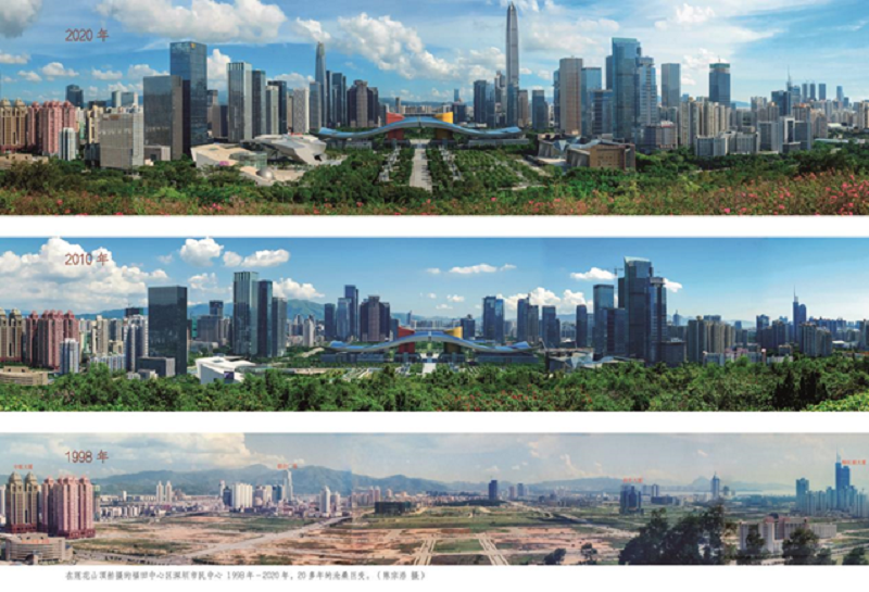 1998—2020年,在莲花山顶上拍摄的福田中心区深圳市民中心的沧桑巨变(陈宗浩 摄)