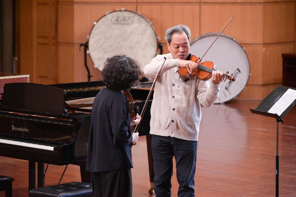 各位专家围绕小提琴、中提琴、大提琴等弦乐专业,通过理论解读、曲目讲解、示范演奏、现场答疑等方式为学员带来丰富实用的教学内容。徐惟聆从音乐的艺术表达、国际视野等各个角度,解答了学员在学习、教学实践过程中的疑难问题;何荣针对学员的示范曲目进行细致入微的针对性指导,深入剖析乐曲的技术精髓,逐一拆解演奏逻辑,细抠技术细节;李继武为学员厘清“教”与“学”、技术与音乐表现、内心听觉与客观听觉、音乐表达与演奏实践的内在关联,分享审美观提升的路径;陈曦总结了林耀基先生的艺术精神与教学方法,并结合自身丰富的学习、演出经历,带来富有启发的教学分享;何弦解答了学员在小提琴演奏技巧、教学方法与个人专业生涯规划等方面的问题,传递了兼具实用性与深度的专业理念;马雯聚焦大提琴的演奏技巧,精讲与示范相结合,手把手指导学员打磨演奏细节、优化技艺表达、把握乐曲风格。